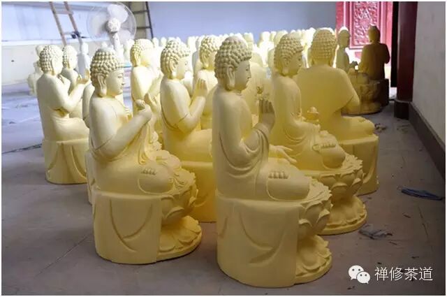 八十八佛殿圣像已全部打好腻子,即将喷底漆、装金