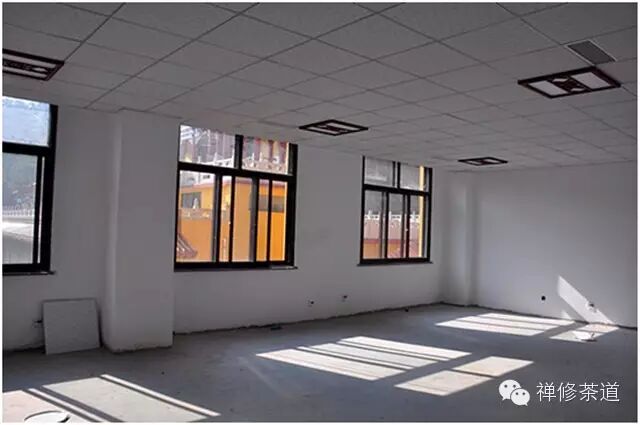 书画院内墙粉刷、天花板、窗户安装完工,正在进行电路安装,房顶铺装青石板等工程