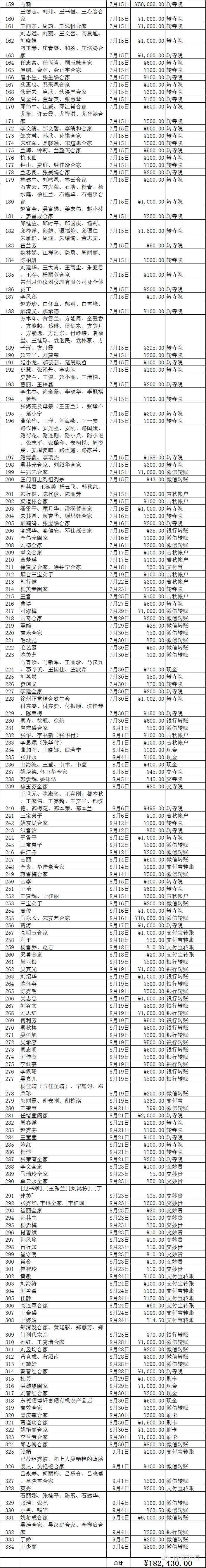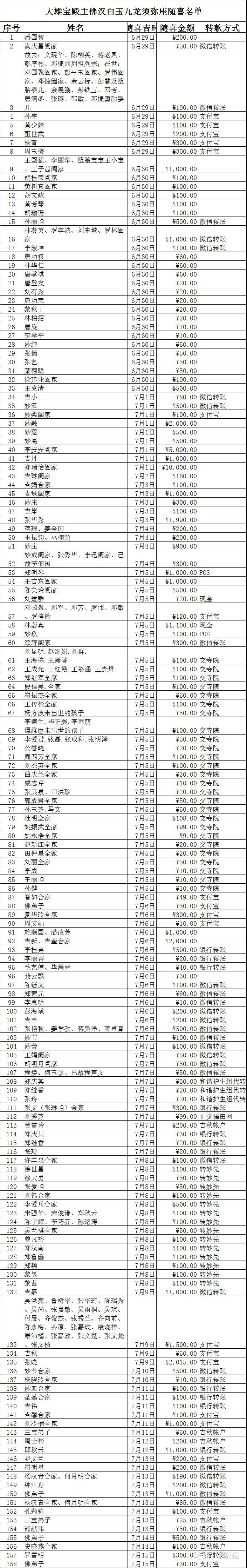 现已有师兄发心供养明细:王春清5万元;徐锡英5万元;李永亮1万元;