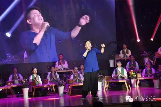禅修茶道祝吉祥音乐会的节目《慈心·一笑泯仇》由冯果演唱;《慈心·各得其乐》,冯果与大家一起合唱。