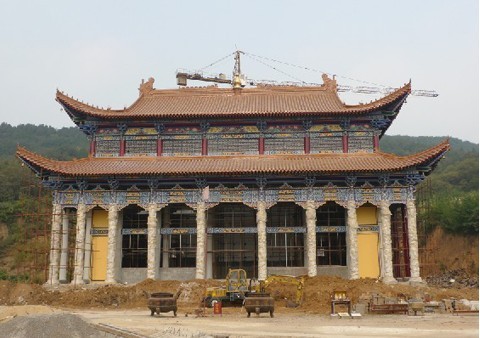 /2009年万佛大雄宝殿挂琉璃瓦,彩画装修,塑佛像。