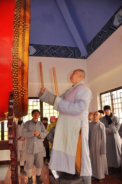 仁炟法师教授出家众敲击风雷鼓