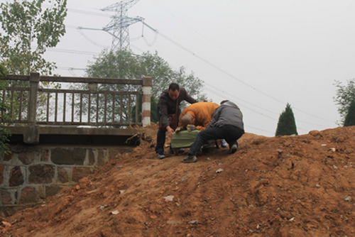 黑暗中,吉生、王济孝、妙空赶紧拿着手电筒到处找木棍和绳子。还好,就像事先做好准备一样,王济孝找来一根木棍,妙空找来一根废弃的自行车刹车细钢丝绳,吉生不知从哪里找来一根铁钉。细钢丝绳上有许多毛刺,把老衲、吉生、妙空的手都扎冒血了,但是大家顾不了那么多,七手八脚很快便把木棍与不锈钢手柄固定在一起,木棍的下端则用铁钉钉在了拜凳上。就这样,继续拜行。终于拜上了枞阳江堤,离桂家坝长江汽车轮渡码头还剩三华里,留待明天再拜。