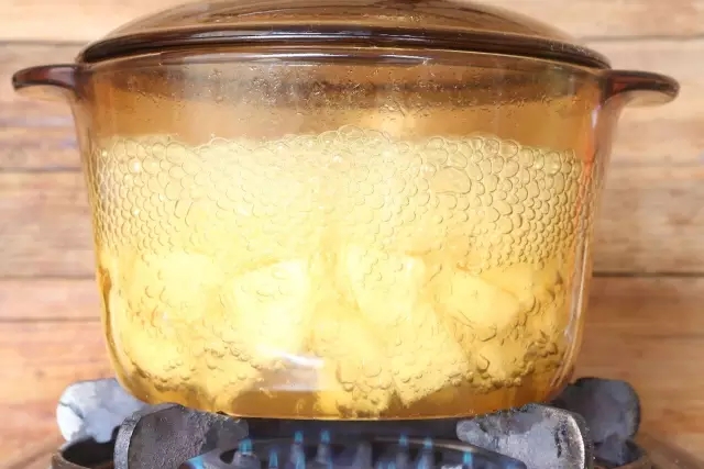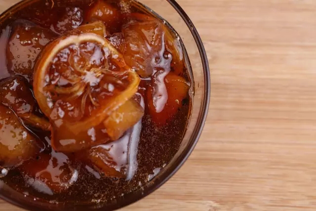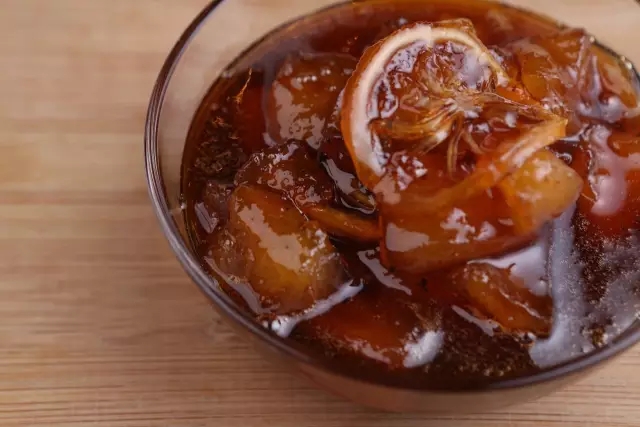 ④5个小时后,盛出熬好的冰糖雪梨膏,冷却后用消毒的玻璃密封杯冷藏。
