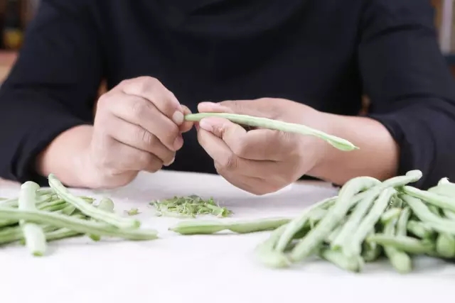 ?餐厅里为了保持四季豆的色泽翠绿,大多数不会做得熟透。豆茎要摘除,否则既影响口感,又不易消化。在家做一次也不容易,要一根一根的处理,去掉头尾抽茎再掰成小段,且吃且珍惜。