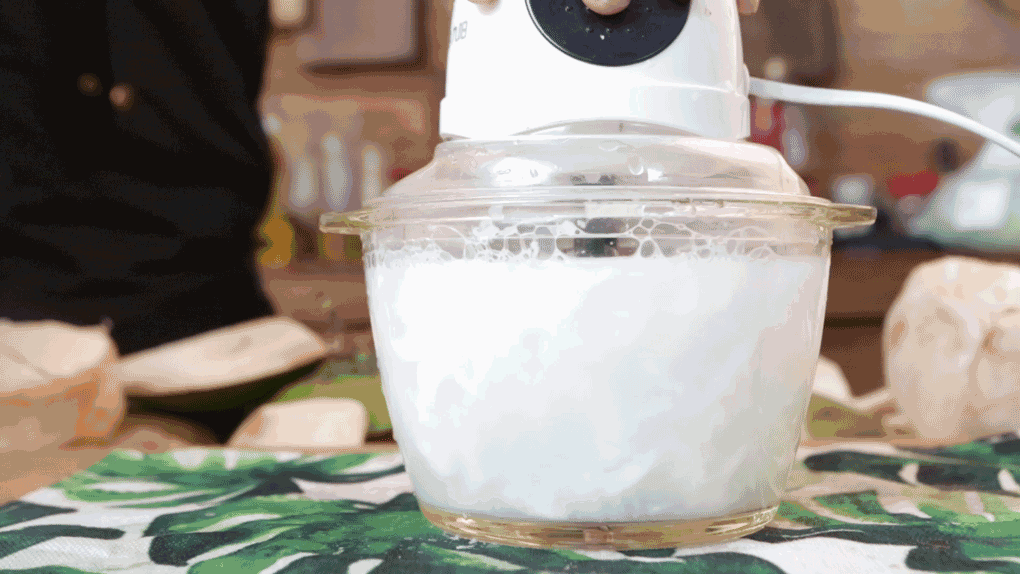 ③中速不到一分钟打成浓稠的奶白色椰浆
