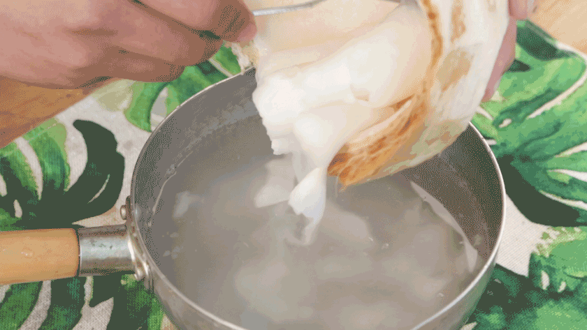 ②取好的椰汁椰肉准备打汁
