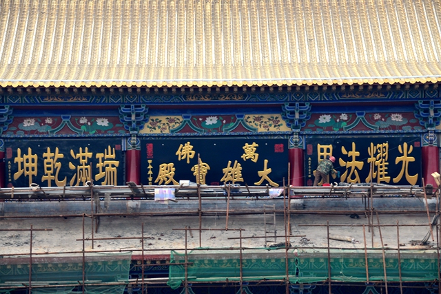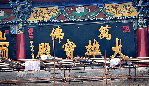 2015年3月18日,农历正月二十八,对于博山正觉寺来说是一个不同寻常的日子,备受关注的万佛大雄宝殿今天安装牌匾。
