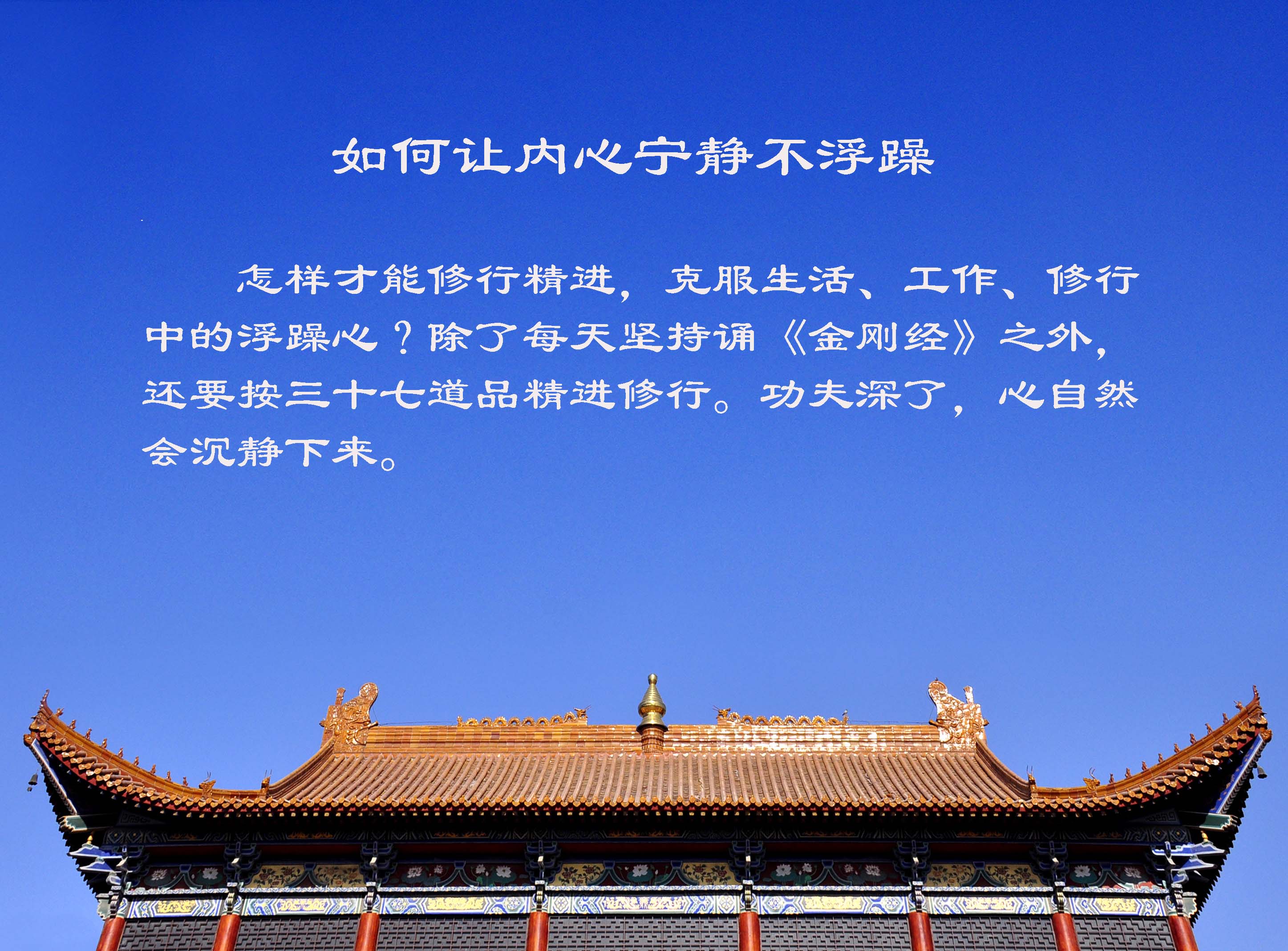 怎样才能修行精进,克服生活、工作、修行中的浮躁心?除了每天坚持诵《金刚经》之外,还要按三十七道品精进修行。功夫深了,心自然会沉静下来。