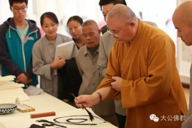 仁炟大和尚为大美正觉佛教文化展留下墨宝。(摄影:姚勇)